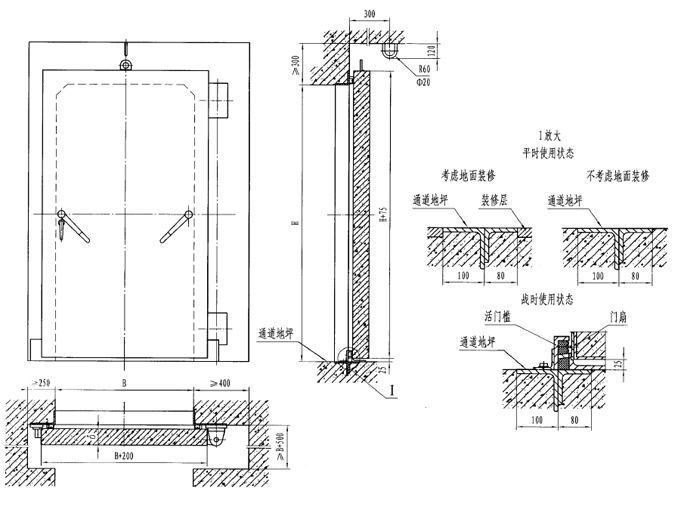 此类门的特点是平时不设门槛,地面平整,便于人员或车辆通行:战时快速设置门槛,以满足防护、密闭要求。