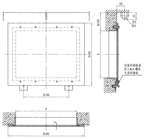 | 型号 | 门孔宽B | 门孔高H | 封堵板厚δ |