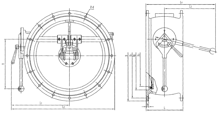 手动双连杆密闭阀门是设置在通风系统中,其特点是能阻止毒剂通过管道进入工程内部,也可用于转换通风方式。