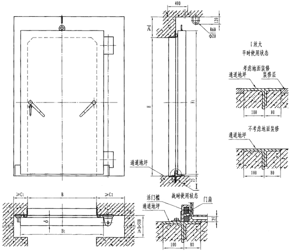 此类门的特点是平时不设门槛,地面平整,便于人员或车辆通行;战时快速设置门槛,以满足防护、密闭要求。