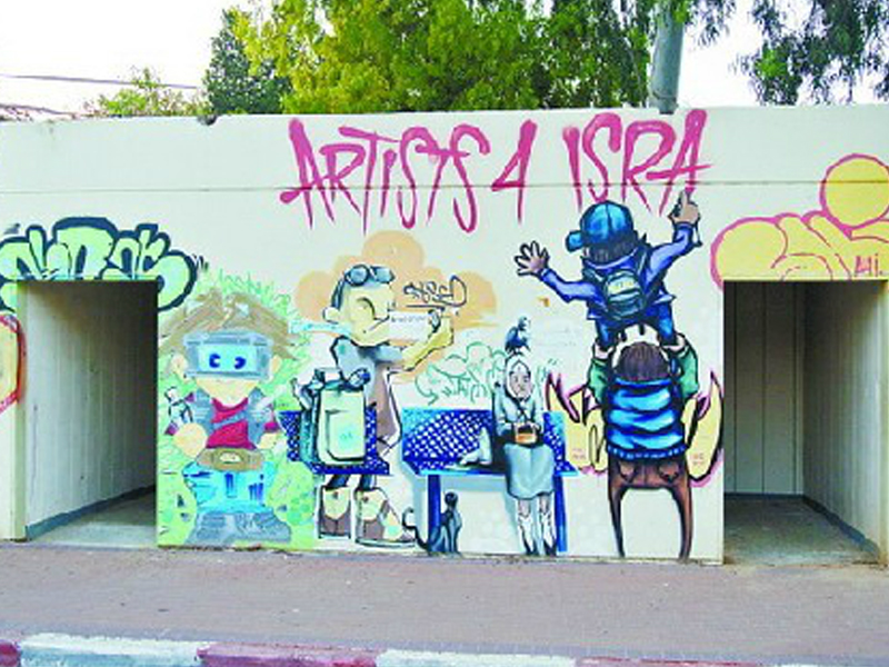 《环球时报》记者曾多次走访位于以色列和加沙边境、受火箭弹袭击最猛烈的斯德洛特。这座拥有2.4万人口的小镇有一个当地民众并不喜欢的名号——“世界防空洞之都”。当地的防空洞密度非常高,数十米即可见到一个。篮球场大小的空间内容纳有6个防空洞。不知是出于缓解紧张心情的需要,还是爱好艺术的以色列人的天性,几乎每一个掩体上都绘有个性十足的涂鸦,有风景画、嘻哈风、漫画人物组图等。