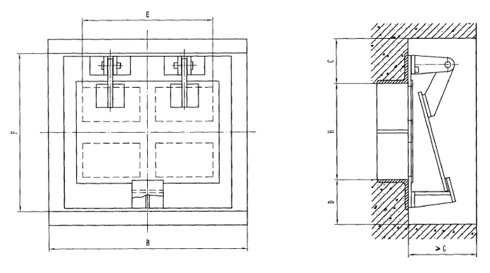 此类悬摆式活门为钢结构,使用、维护方便,适用于进、排风口和排烟口。其中悬摆式防爆波屏蔽活门是在普通悬摆式防爆活门的基础上增加了屏蔽功能,其防电磁脉冲能力为II级。
