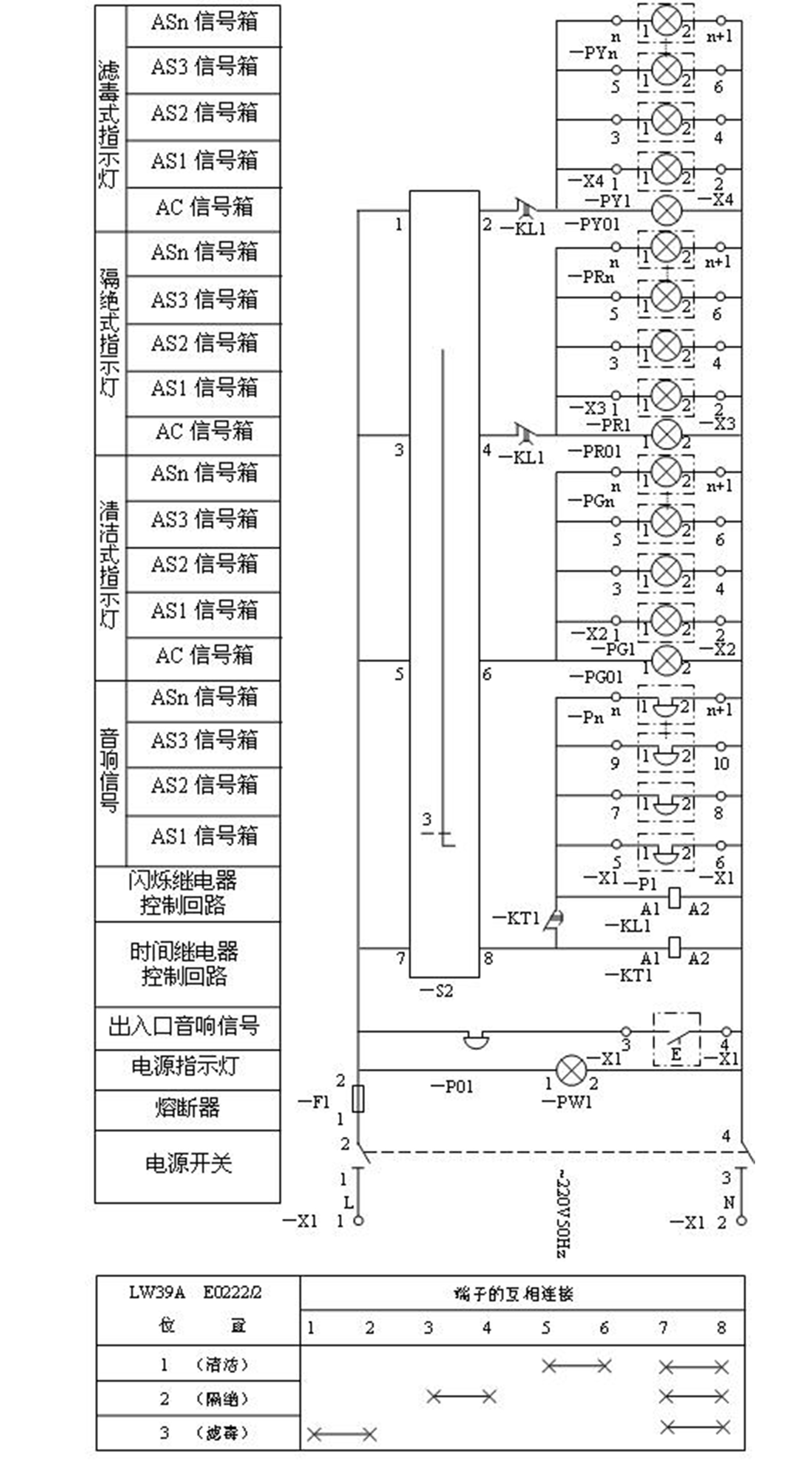 2、AS1~ASn:通风方式信号指示灯箱,分别高在战时进风房、排风机房、柴油发电机房、电站控制室、人员出入口(连通口)最里一道密闭门内侧及其他需要设置的地方。数量由单项工程设计决定。